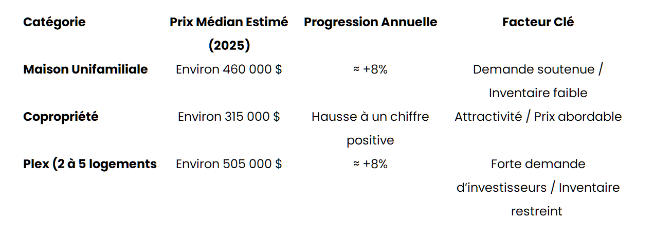 Le nerf de la guerre demeure l’offre : tant qu’il n’y aura pas assez de nouvelles unités, les marchés comme Sherbrooke resteront sous tension. Les prix ne progressent plus à deux chiffres comme en 2021–2022, mais ils demeurent fermes, en particulier dans les segments les plus recherchés.
